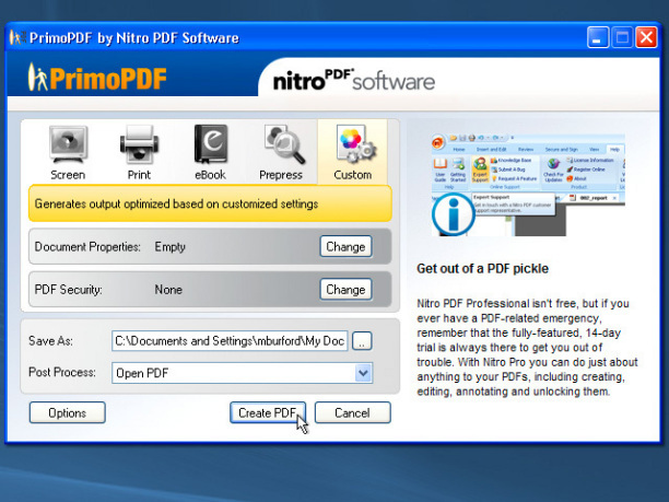 Nessun problema con PrimoPDF che trasforma i vostri documenti da più di 300 formati diversi in PDF in un baleno. La versione free offre anche altre numerose utility.