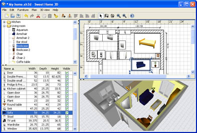 Sweet Home 3D è un software open source, quindi gratuito per il disegno di interni che ti aiuta a disporre il tuo mobilio in su di una piantina 2D, con un anteprima 3D.