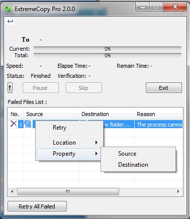 Durante il processo di copia o spostamento dei file la finestra di ExtremeCopy potrà essere minimizzata nella system tray di Windows in modo tale da non intralciare l’esecuzione di eventuali altre operazioni e, inoltre, sarà anche possibile mettere in pausa il processo così da poterlo poi riavviare anche in un secondo momento.